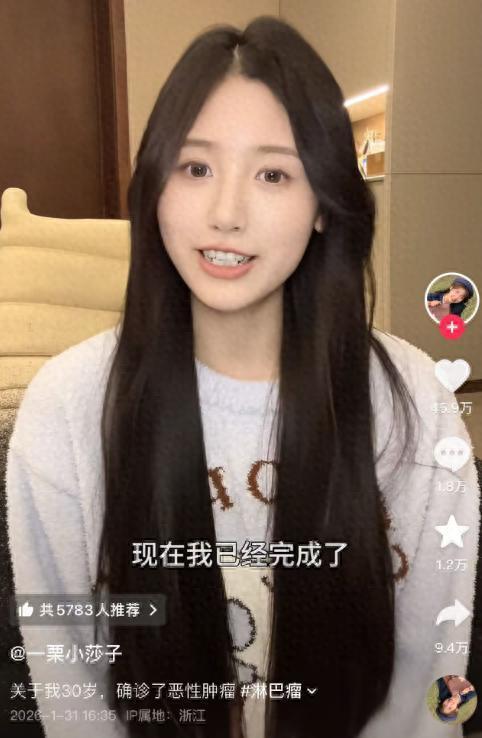 4 月 10 日,千万粉丝网红 " 一栗小莎子 " 更新账号,透露了自己患癌之后的最新情况。